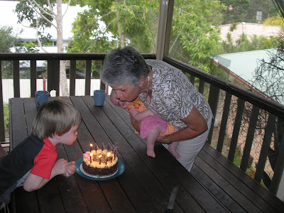 Here we are singing happy birthday to nan. Dylan was just about jumping through his skin to help nan blow out the candles. Later that day nan and Dylan had a big deep and meaningful talk about how Dylan is going to get himself a wise one day. It took nan a while to catch on but he was trying to tell her that one day he was going to get himself a wife. He has trouble saying f's lol. It was just so cute. We all had a good laugh anyway.